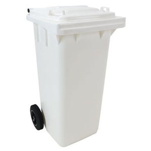 Afvalbak full color, Totale inhoud: 120 L, Opening: Voorzijde, Materiaal: Kunststof, Materiaal: Polyethyleen van hoge dichtheid, Vuilnisbak inhoud (Reeks): Groot (+ 90 L), Aantal wielen (Reeks): 2 wielen, Breedte: 55 cm, Hoogte: 93 cm, Kleur: Wit, Verrijdbaar: ja, Gerecycled product: 62 %, Eco-verantwoordelijke aanpak: ja, Aantal wielen: 2, Gescheiden afvalinzameling: ja, Wiel Ø: 200 mm