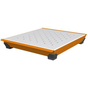 Stalen opvangbak voor laboratorium, Vermogen (aantal vaten): 0, Roostermat: ja, Inhoud opvangbak: 5 L, Kleur: Oranje, Totale lengte: 415 mm, Totale breedte: 300 mm, Totale hoogte: 50 mm, Gewicht: 4.2 g, RAL: 2000, Waterige oplossing: ja, Koolwaterstof oplosmiddelen: ja, Plaatdikte: 1.5 mm
