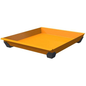 Stalen opvangbak voor laboratorium, Vermogen (aantal vaten): 0, Roostermat: nee, Inhoud opvangbak: 8 L, Kleur: Oranje, Totale lengte: 415 mm, Totale breedte: 415 mm, Totale hoogte: 50 mm, Gewicht: 3 g, RAL: 2000, Waterige oplossing: ja, Koolwaterstof oplosmiddelen: ja, Plaatdikte: 1.5 mm