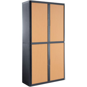 Kantoorkast met systeem voor hangmap metaal hoogte 204 cm Easy Office, Totale hoogte: 204 cm, Totale breedte: 110 cm, Deur openingstype: Met roldeur, Type sluiting: Met sleutel, Kleur ombouw: Zwart, Totale diepte: 41.5 cm, Type product: Metalen kast, Kleur deur: Beuken, Max. belasting per legbord: 75 kg, Aantal legborden: 4, Plaatstaal dikte: 12/10de, Montage: Zelfbouw, Recyclebare verpakking: Ja - 100%, Gerecyclede verpakkingen: 87 %, Recyclebaar product: Ja - 100%, Gerecycled product: 85 %, Eco-verantwoordelijke aanpak: ja