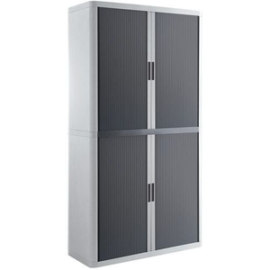 Kantoorkast met systeem voor hangmap metaal hoogte 204 cm Easy Office, Totale hoogte: 204 cm, Totale breedte: 110 cm, Deur openingstype: Met roldeur, Type sluiting: Met sleutel, Kleur ombouw: Wit, Totale diepte: 41.5 cm, Type product: Metalen kast, Kleur deur: Antraciet, Max. belasting per legbord: 75 kg, Aantal legborden: 4, Plaatstaal dikte: 12/10de, Geleverd gemonteerd: nee, Montage: Zelfbouw, Recyclebare verpakking: Ja - 100%, Gerecyclede verpakkingen: 87 %, Recyclebaar product: Ja - 100%, Gerecycled product: 30 %, Eco-verantwoordelijke aanpak: ja