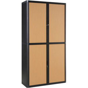 Kantoorkast met systeem voor hangmap metaal hoogte 204 cm Easy Office, Totale hoogte: 204 cm, Totale breedte: 110 cm, Deur openingstype: Met roldeur, Type sluiting: Met sleutel, Kleur ombouw: Antraciet, Totale diepte: 41.5 cm, Type product: Metalen kast, Kleur deur: Beuken, Max. belasting per legbord: 75 kg, Aantal legborden: 4, Plaatstaal dikte: 12/10de, Montage: Zelfbouw, Recyclebare verpakking: Ja - 100%, Gerecyclede verpakkingen: 87 %, Recyclebaar product: Ja - 100%, Gerecycled product: 30 %, Eco-verantwoordelijke aanpak: ja