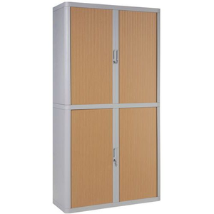 Kantoorkast met systeem voor hangmap metaal hoogte 204 cm Easy Office, Totale hoogte: 204 cm, Totale breedte: 110 cm, Deur openingstype: Met roldeur, Type sluiting: Met sleutel, Kleur ombouw: Grijs, Totale diepte: 41.5 cm, Type product: Metalen kast, Kleur deur: Beuken, Max. belasting per legbord: 75 kg, Aantal legborden: 4, Plaatstaal dikte: 12/10de, Geleverd gemonteerd: nee, Montage: Zelfbouw, Recyclebare verpakking: Ja - 100%, Gerecyclede verpakkingen: 87 %, Recyclebaar product: Ja - 100%, Gerecycled product: 30 %, Eco-verantwoordelijke aanpak: ja