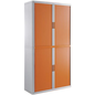 Kantoorkast met systeem voor hangmap metaal hoogte 204 cm Easy Office, Totale hoogte: 204 cm, Totale breedte: 110 cm, Deur openingstype: Met roldeur, Type sluiting: Met sleutel, Kleur ombouw: Wit, Totale diepte: 41.5 cm, Type product: Metalen kast, Kleur deur: Oranje, Max. belasting per legbord: 75 kg, Aantal legborden: 4, Plaatstaal dikte: 12/10de, Montage: Zelfbouw, Recyclebare verpakking: Ja - 100%, Gerecyclede verpakkingen: 87 %, Recyclebaar product: Ja - 100%, Gerecycled product: 30 %, Eco-verantwoordelijke aanpak: ja