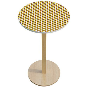 Hoge tafel op voet Woody decor, Type onderstel: Centrale, Hoogte: 110 cm, Breedte: 60 cm, Vorm: Rond, Tafelblad materiaal: Gemelamineerd, Tafelblad kleur: Geel, Vermogen (aantal personen): 1, Rand materiaal: Gefineerde randen, Totale breedte: 60 cm, Selectie telewerken: nee, Recyclebare verpakking: Ja - 100%, Recyclebaar product: Ja - 100%, Onderstel materiaal: Massief hout, Type: Hoge tafel op voetstuk, Dikte tafelblad: 20 mm