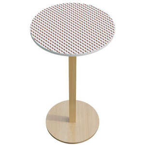 Een ontwerp met een Scandinavische uitstraling MDF blad, gefineerd, kleur naar keuze Ø 60 cm, dikte 20 mm Gelakt massief houten onderstel