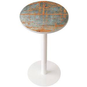 Hoge vergadertafel Easy Ø 60 cm, blad met decoratie, Type onderstel: Centrale, Hoogte: 110 cm, Breedte: 60 cm, Vorm: Rond, Tafelblad materiaal: Gemelamineerd, Tafelblad kleur: Bont gekleurd, Vermogen (aantal personen): 2, Onderstel kleur: Wit, Bovenste blad Ø: 60 cm, Selectie telewerken: nee, Recyclebare verpakking: Ja - 100%, Recyclebaar product: Ja - 100%, Onderstel materiaal: Staal, Model: Decor roest, Dikte tafelblad: 25 mm