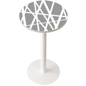 Hoge vergadertafel Easy Ø 60 cm, blad met decoratie, Type onderstel: Centrale, Hoogte: 110 cm, Breedte: 60 cm, Vorm: Rond, Tafelblad materiaal: Gemelamineerd, Tafelblad kleur: Bont gekleurd, Vermogen (aantal personen): 2, Onderstel kleur: Wit, Bovenste blad Ø: 60 cm, Selectie telewerken: nee, Recyclebare verpakking: Ja - 100%, Recyclebaar product: Ja - 100%, Onderstel materiaal: Staal, Model: Decor street, Dikte tafelblad: 25 mm