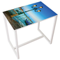 Hoge vergadertafel Easy Office, 4 personen, kleur: decoratie, Hoogte: 110 cm, Breedte: 114 cm, Totale diepte: 75 cm, Vorm: Rechthoek, Tafelblad materiaal: Gemelamineerd, Tafelblad kleur: Blauw, Vermogen (aantal personen): 4, Onderstel kleur: Wit, Rand materiaal: ABS, Totale breedte: 114 cm, Selectie telewerken: nee, Recyclebare verpakking: Ja - 100%, Recyclebaar product: Ja - 100%, Onderstel materiaal: Staal, Model: Decor Lagune, Type: Hoge vergadertafel, Dikte tafelblad: 25 mm