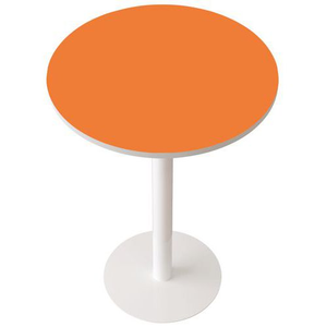 Hoge vergadertafel Easy Ø 80 cm, effen gekleurd blad, Hoogte: 110 cm, Tafelblad materiaal: Gemelamineerd, Tafelblad kleur: Oranje, Vermogen (aantal personen): 3, Onderstel kleur: Wit, Bovenste blad Ø: 80 cm, Selectie telewerken: nee, Recyclebare verpakking: Ja - 100%, Recyclebaar product: Ja - 100%, Onderstel materiaal: Staal, Dikte tafelblad: 25 mm