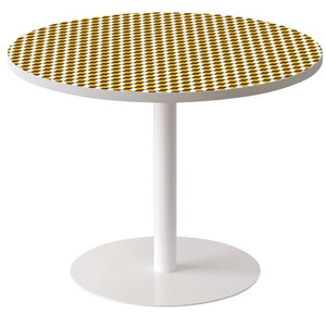 Tafelonderstel Easy office, Breedte: 80 cm, Vorm: Rond, Tafelblad kleur: Geel, Hoogte: 60 cm, Onderstel kleur: Wit, Randen materiaal: ABS, Recyclebare verpakking: Ja - 100%, Recyclebaar product: Ja - 100%, Onderstel materiaal: Staal, Dikte tafelblad: 25 mm, Tafelblad materiaal: Gemelamineerd