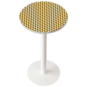 Hoge vergadertafel Easy Ø 60 cm, blad met decoratie, Type onderstel: Centrale, Hoogte: 110 cm, Breedte: 60 cm, Vorm: Rond, Tafelblad materiaal: Gemelamineerd, Tafelblad kleur: Geel, Vermogen (aantal personen): 2, Onderstel kleur: Wit, Bovenste blad Ø: 60 cm, Selectie telewerken: nee, Recyclebare verpakking: Ja - 100%, Recyclebaar product: Ja - 100%, Onderstel materiaal: Staal, Model: Decor saffraan, Dikte tafelblad: 25 mm