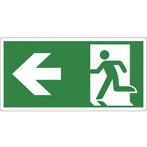 Signaalbord dat de richting naar de nooduitgang aangeeft. De combinatie van het pictogram en de pijl naar links geeft duidelijke en nauwkeurige informatie over de richting die moet worden gevolgd in geval van nood. Robuust en stevig dankzij de sandwichconstructie. Roestvast en schimmelwerend. Gelamineerde polymeer: beschermt de opdruk tegen fysieke schade en filtert een deel van de uv-straling. Voor binnen- en/of buitengebruik.