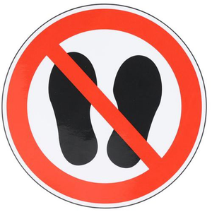 Bord Hier niet lopen/stilstaan, zelfklevend, Zelfklevend: ja, Stijf: nee, Norm ISO 7010: ja, Materiaal: Polyester, Paneel vorm: Rond, Type bord: Verbod, Diameter Ø: 100 mm