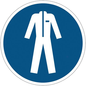 Wijs op de verplichting om beschermende kleding te dragen in een specifieke zone, om het risico op ongevallen te verminderen. Bord voor verlijming op elk glad, ontvet en schoon oppervlak. Gelamineerde polymeer: beschermt de opdruk tegen fysieke schade en filtert een deel van de uv-straling.