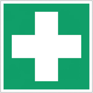 Pictogram met EHBO-symbool, voor het snel lokaliseren van hulpmiddelen bij noodgevallen. Te verlijmen op elk glad, schoon en ontvet oppervlak. Gelamineerde polymeer: beschermt de opdruk tegen fysieke schade en filtert een deel van de uv-straling.