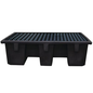 Opvangbak van gerecycled PE 240 l, Roostermat: ja, Inhoud opvangbak: 240 L, Kleur: Zwart, Rooster materiaal: Polyethyleen, Vermogen (aantal vaten): 2, Totale lengte: 1300 mm, Totale breedte: 900 mm, Totale hoogte: 385 mm, Materiaal: Polyethyleen, Max. statisch draagvermogen: 600 kg, Nuttige lengte: 1210 mm, Nestbaar: ja, Nuttige breedte: 810 mm, Recyclebare verpakking: Ja - 100%, Recyclebaar product: Ja - 100%, Gerecycled product: 30 %, Eco-verantwoordelijke aanpak: ja, Zuurbestendig: ja