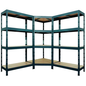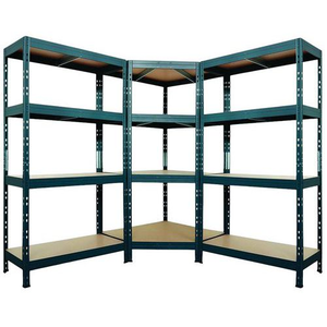 Set met 1 hoekstelling (1800 x 900 x 450 mm) en 2 lichte stellingen Rapid 3 évolution (1800 x 1500 x 450 mm). Industriële stellingen geschikt voor het opslaan van lichte tot middelzware lasten (max. 250 kg per niveau). Zeer stevige bevestiging van de liggers door middel van dubbele klinknagels, 2 verstevigingen per niveau onder de legborden. Afgewerkt met hoogwaardige epoxycoating.