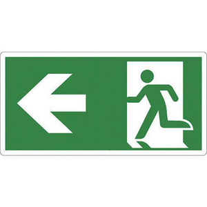 Bord Nooduitgang pijl naar links, Zelfklevend: nee, Stijf: ja, Paneel vorm: Vierkant, Type bord: Evacuatie, Hoogte: 125 mm, Breedte: 250 mm, Norm ISO 7010: ja, Dikte: 1 mm