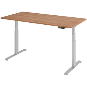 Elektrisch bureau 160 x 80 cm - notenhout/grijs.