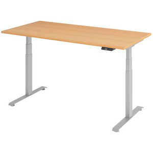 Elektrisch bureau 160×80 cm, beuken/grijs.
