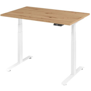 Elektrisch bureau 120×80 cm, rustiek eiken/wit.