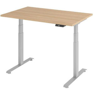 Elektrisch bureau 120×80 cm, eiken/grijs.