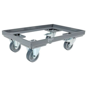 Bakkenwagen staal voor euronormbakken, Max. belasting: 250 kg, Nuttige breedte: 410 mm, Nuttige lengte: 630 mm, Materiaal: Staal, Wiel loopvlak: Thermoplastisch elastomeer, Zwenkwiel Ø: 100 mm