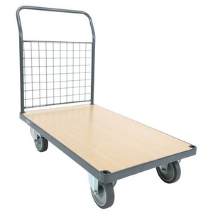 Plateauwagen met gaaswand en vaste duwbeugel en robuust frame, stalen chassis en duwbeugel met 1 gaaswand voor een langere levensduur.Goed hanteerbaar en veilig: uitgerust met 2 zwenkwielen met remmen
