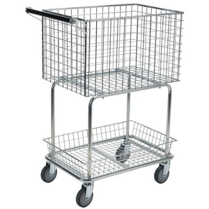 Multifunctionele orderverzamelwagen met 2 manden en gaas wand.Heeft een maximaal draagvermogen van 100 kg.Heeft 4 zwenkwielen. Afmetingen: mand 1: lengte 60 mm x breedte 400 mm x hoogte 367 mm, mand 2: lengte 60 mm x breedte 405 mm x hoogte 109 mm