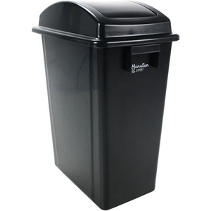 Zwarte smalle afvalbak 40 l, bestaat voor 70% uit gerecycled materiaal.Eenvoudig te reinigen en te onderhouden.Stevig en duurzaam.Afvalbak met deksel.Voor aan de wand of op de grond.