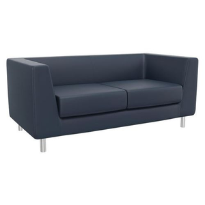 Chromen poten voor een sober design Florin 2-zitsbank, EN 1021-1 en 2 gecertificeerd, reinigbaar met een vochtige spons.Vormvast zitkussen van polyurethaanschuim.Armleuningen hoogte 25 cm.Structuur van massief sparren- en spaanplaat en
