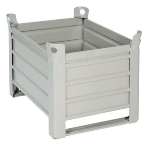 Stapelbare palletkist, Max. belasting: 1000 kg, Totale hoogte: 600 mm, Totale breedte: 635 mm, Totale lengte: 835 mm, Model: Zonder tuimelklep, Pallet basis: 2 zolen, Materiaal: Staal, Kleur: Grijs, Gewicht: 40 kg, Nuttige hoogte: 400 mm, Nuttige breedte: 565 mm, Recyclebare verpakking: Ja - 100%, Recyclebaar product: Ja - 100%, Nuttige lengte: 765 mm