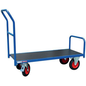 Smalle wagen voor lange ladingen, geschikt voor smalle doorgangen met een breedte van 500 mm. Glissnot vaste duwbeugel van buisstaal en blad van 16 mm dik. Wielen Ø 200 mm: 2 bokwielen en 2 zwenkwielen met rem.