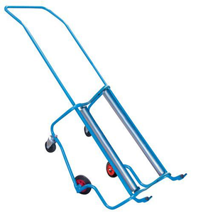 Vatenschraag, Max. belasting: 250 kg, Model: Vatenschraag + kiepdissel, Totale breedte: 665 mm, Totale diepte: 1840 mm, Totale hoogte: 570 mm, Hoogte tot vat: 390 mm, Wiel loopvlak: Rubber, Zwenkwiel Ø: 100 mm, Onderstel materiaal: Staal, Gewicht: 23.5 kg, Voor vat inhoud: 60/220 L, Type vat: Metaal/kunststof, Wiel Ø: 160 mm, Kleur: Blauw