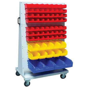 Bakkenwagen in snavelvorm Frame met rand en snalvelvorm frame waarop de platen worden geschroefd. Gemaakt van stevig plaatstaal. Beide kanten worden gebruikt. Uitgerust met 2 x 56 rode bakken van 1 L, 2 x 10 gele bakken van 3 L en 2 x 4 blauwe bakken van 8 L. Uitgerust met 2 handgrepen die op het frame zijn bevestigd, waardoor ze gemakkelijk te hanteren zijn. Resistente en duurzame epoxyverf. De platen alleen kunnen ook aan de muur of in een kast worden bevestigd.