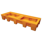 Opvangbak 4 vaten op een rij, Inhoud opvangbak: 450 L, Kleur: Oranje, Vermogen (aantal vaten): 4, Max. statisch draagvermogen: 1100 kg, Totale breedte: 936 mm, Totale hoogte: 395 mm, Totale lengte: 2579 mm, Rooster materiaal: Zonder, Roostermat: nee, Materiaal: Polyethyleen met hoge dichtheid, Lean Management: ja, Recyclebare verpakking: Ja - 100%, Recyclebaar product: Ja - 100%, Zuurbestendig: ja