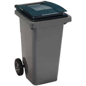Container met 2 wielen, Totale inhoud: 240 L, Opening: Kantelbaar, Materiaal: Kunststof, Materiaal: Polyethyleen, Vuilnisbak inhoud (Reeks): Groot (+ 90 L), Aantal wielen (Reeks): 2 wielen, Deksel kleur: Groen, Body kleur: Grijs, Lengte: 58 cm, Breedte: 72.5 cm, Hoogte: 107.5 cm, Kleur: Groen, Max. belasting: 100 kg, Recyclebaar product: Ja - 100%, Gerecycled product: 100 %, Eco-verantwoordelijke aanpak: ja, Gewicht: 15 kg, Aantal wielen: 2, Gescheiden afvalinzameling: ja, Wiel Ø: 20 cm