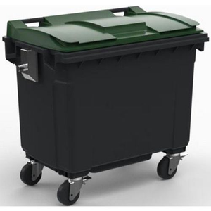 Mobiele container SULO, Totale inhoud: 660 L, Opening: Kantelbaar, Vuilnisbak inhoud (Reeks): Groot (+ 90 L), Aantal wielen (Reeks): 4 wielen, Gewicht: 47 kg, Deksel kleur: Groen, Body kleur: Grijs, Hoogte: 116 cm, Materiaal: Polyethyleen van hoge dichtheid, Kleur: Groen, Breedte: 77.2 cm, Lengte: 126 cm, Max. belasting: 270 kg, Recyclebaar product: Ja - 100%, Gerecycled product: 100 %, Eco-verantwoordelijke aanpak: ja, Model: Metalen greep aan zijkant, Type: Standaard, Aantal wielen: 4, Gescheiden afvalinzameling: ja, Wiel Ø: 160 mm, NF: nee