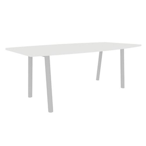 Tonvormige congrestafel 210 x 102 cm, Type onderstel: 4 poten, Hoogte: 74 cm, Breedte: 102 cm, Totale diepte: 80 cm, Vorm: Rechthoek, Tafelblad kleur: Wit, Onderstel kleur: Zilver, Selectie telewerken: nee, Gewicht: 52 kg, Type: Vergadertafel
