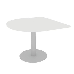 Basistafel Meeting 110x102 cm, Type onderstel: Paneel, Hoogte: 74 cm, Breedte: 102 cm, Vorm: Halfrond, Tafelblad kleur: Wit, Onderstel kleur: Zilver, Selectie telewerken: nee, Type: Basistafel, Dikte tafelblad: 25 mm