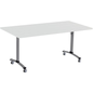 Mobiele tafel met kantelbaar gemelamineerd blad. Mobiel en flexibel, eenvoudig op te klappen voor een optimale opslag.