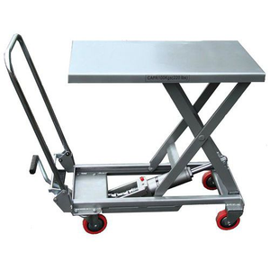 Heftafel handbediend, Max. belasting: 100 kg, Max. hoogte plateau: 265 mm, Min. hoogte plateau: 730 mm, Gewicht: 26 kg, Breedte plateau: 450 mm, Lengte plateau: 700 mm, Materiaal: Aluminium, Diameter wiel: 100 mm