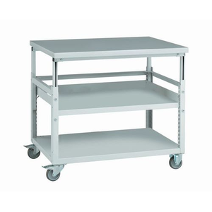 Ideaal voor gebruik in werkplaatsen Mobiele werkbank voor diverse montagewerkzaamheden. Stel de hoogte van de werkbank eenvoudig af tussen 72,5 en 96,5 cm. Met extra legbord voor nog meer opbergruimte. Werkbank voorzien van 4 wielen, waarvan 2 geremde zwenkwielen.