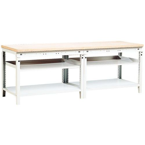 Werkbank Function 230 met legborden, Max. belasting: 1000 kg, Totale hoogte: 850 mm, Totale breedte: 2300 mm, Werkbank blad materiaal: Beuk multiplex, Totale diepte: 750 mm, Type: 208, Model: C2, Dikte tafelblad: 40 mm, Aantal laden: 0, Aantal legborden: 4, Aantal deuren: 0, Aantal kasten: 2, Special Covid-19: nee, Recyclebare verpakking: Ja - 100%, Recyclebaar product: Ja - 100%, Gewicht: 104 kg
