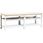 Extra brede werkbank voor in de werkplaats. Voorzien van uitsparingen voor doorvoer van stroom- en persluchtvoorziening. Bovenste legborden eenvoudig in hoogte verstelbaar. Stroom- en persluchtvoorziening apart te bestellen. Wordt gemonteerd geleverd.