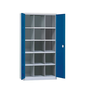 Draaideurkast 1000, Max. belasting: 1000 kg, Materiaal: Staal, Totale hoogte: 1950 mm, Totale breedte: 1005 mm, Aantal legborden: 4, Totale diepte: 445 mm, Type: Hoge kast, Max. belasting per legbord: 100 kg, Kleur deur: Blauw, Frame kleur: Grijs, Aantal vakken/kolom: 15, RAL: 7035 5023, Geleverd gemonteerd: ja, Recyclebare verpakking: Ja - 100%, Recyclebaar product: Ja - 100%, Aantal deuren: 2