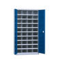 Draaideurkast 1000, Max. belasting: 1000 kg, Materiaal: Staal, Totale hoogte: 1950 mm, Totale breedte: 1005 mm, Aantal legborden: 9, Totale diepte: 445 mm, Type: Hoge kast, Max. belasting per legbord: 100 kg, Kleur deur: Blauw, Frame kleur: Grijs, Aantal vakken/kolom: 40, RAL: 7035 5023, Geleverd gemonteerd: ja, Recyclebare verpakking: Ja - 100%, Recyclebaar product: Ja - 100%, Aantal deuren: 2