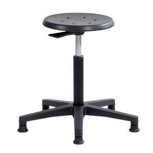 Ronde zitting van polyurethaan, diameter 340 mm, met perforaties die ademen mogelijk maken. Hoogteverstelling van de zitting van 38 tot 52 cm door middel van een gaslift, geregeld door een ronde hendel onder de zitting, bereikbaar over de gehele omtrek. Eenvoudig onderhoud van de basis van polyamide.