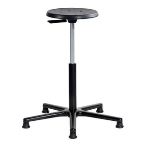 Ronde zitting van polyurethaan, diameter 340 mm, met perforaties die ademen mogelijk maken. Hoogteverstelling van de zitting van 45 tot 65 cm door middel van een gaslift, geregeld door een cirkelvormige hendel onder de zitting, bereikbaar over de gehele omtrek. Eenvoudig onderhoud van de basis van polyamide.